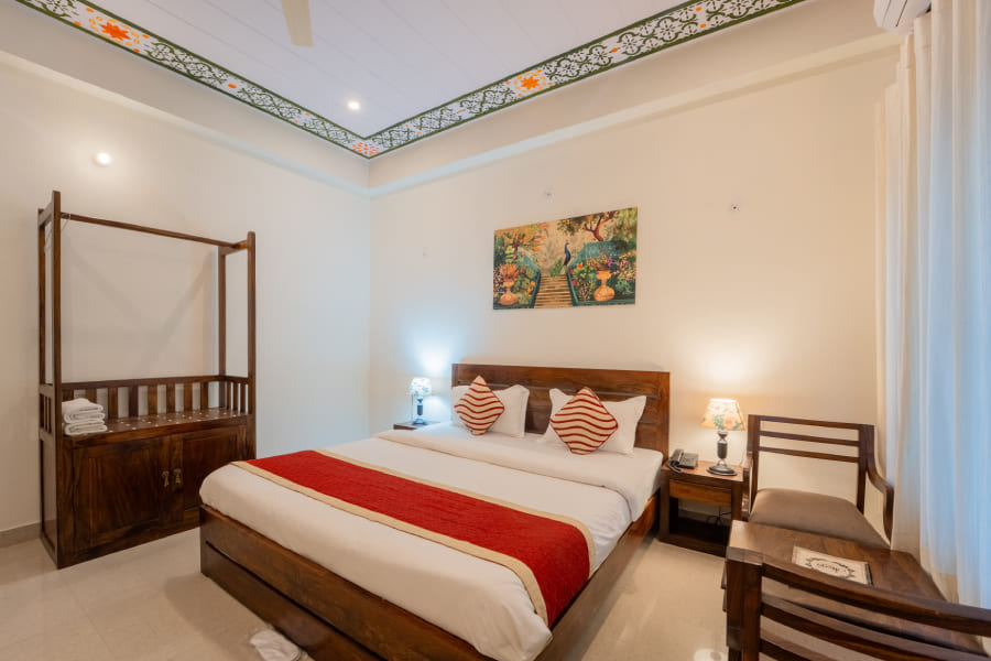 Staying in the Deluxe Category also comes with a range of thoughtful inclusions that enhance the overall experience. Guests enjoy complimentary breakfast featuring local and continental dishes, access to the hotel’s landscaped gardens and lounge areas, and personalized concierge services to arrange sightseeing, safari tours, or transport within Sawai Madhopur. Additionally, facilities like parking, 24-hour front desk assistance, and room service are available for convenience. Travelers can also take advantage of special services such as guided wildlife excursions into Ranthambhore National Park, in-house dining with diverse cuisine options, and curated experiences that showcase Rajasthani culture and hospitality. With these inclusions, the Base Category Deluxe rooms offer not just a stay, but a holistic experience that blends comfort, luxury, and local charm, ensuring every guest leaves with memorable moments of relaxation and adventure.