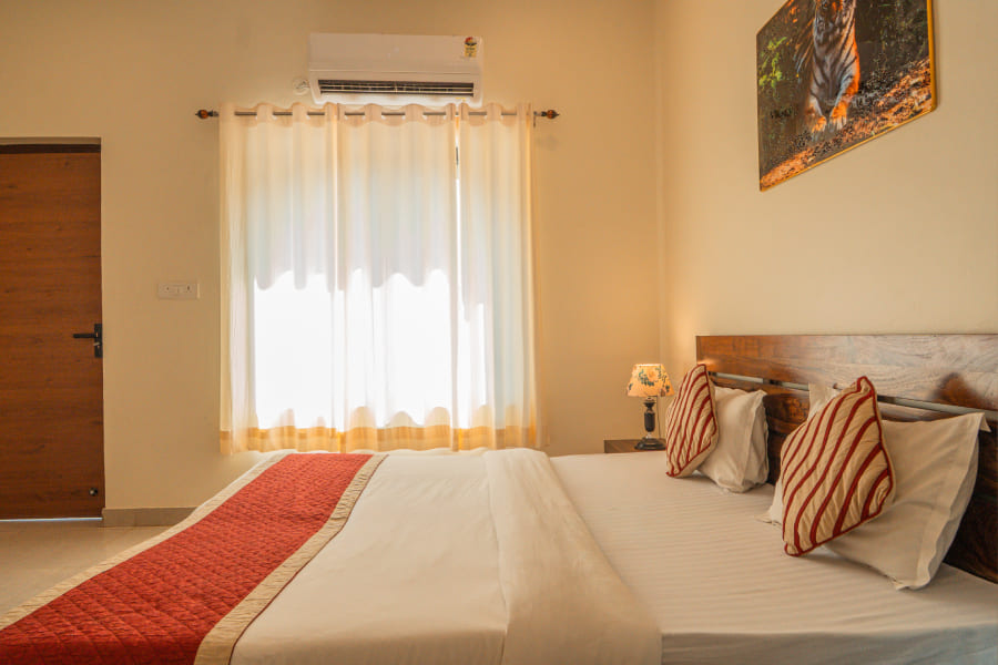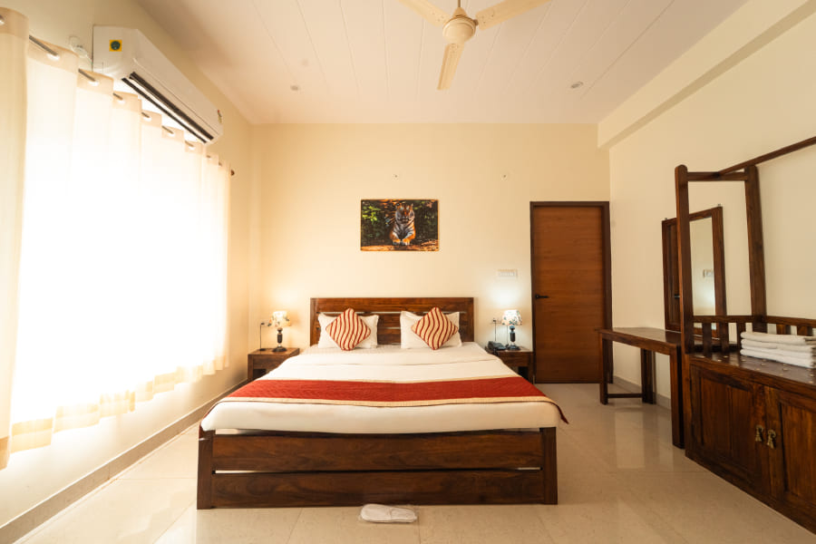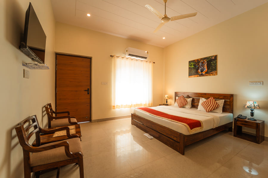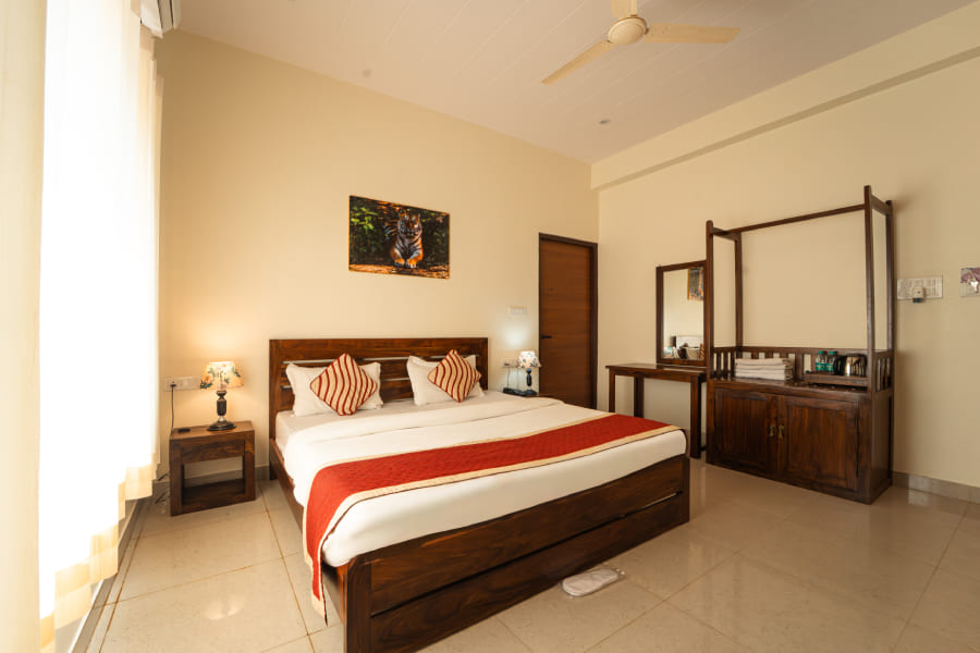 Staying in the Super Deluxe category also comes with a wide range of thoughtful amenities and inclusions aimed at making the experience memorable. Guests enjoy complimentary breakfast with a mix of Rajasthani and continental dishes, access to landscaped gardens, lounge areas, and in-house recreational facilities. Personalized concierge services can help arrange guided safari tours into Ranthambhore National Park, visits to Ranthambhore Fort, or local cultural experiences. Other hotel amenities include 24-hour front desk assistance, room service, in-house multi-cuisine restaurant, laundry and dry-cleaning facilities, parking, and airport/railway transfers on request. For added convenience and leisure, guests can also benefit from recreational activities such as wildlife spotting, cultural programs, or curated local experiences. With its combination of spacious elegance, modern facilities, and attentive hospitality, the Super Deluxe category ensures an indulgent stay that immerses guests in both comfort and the rich cultural charm of Rajasthan.